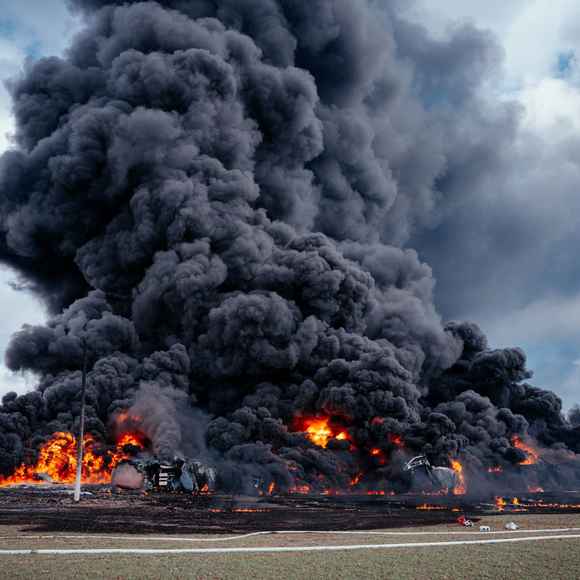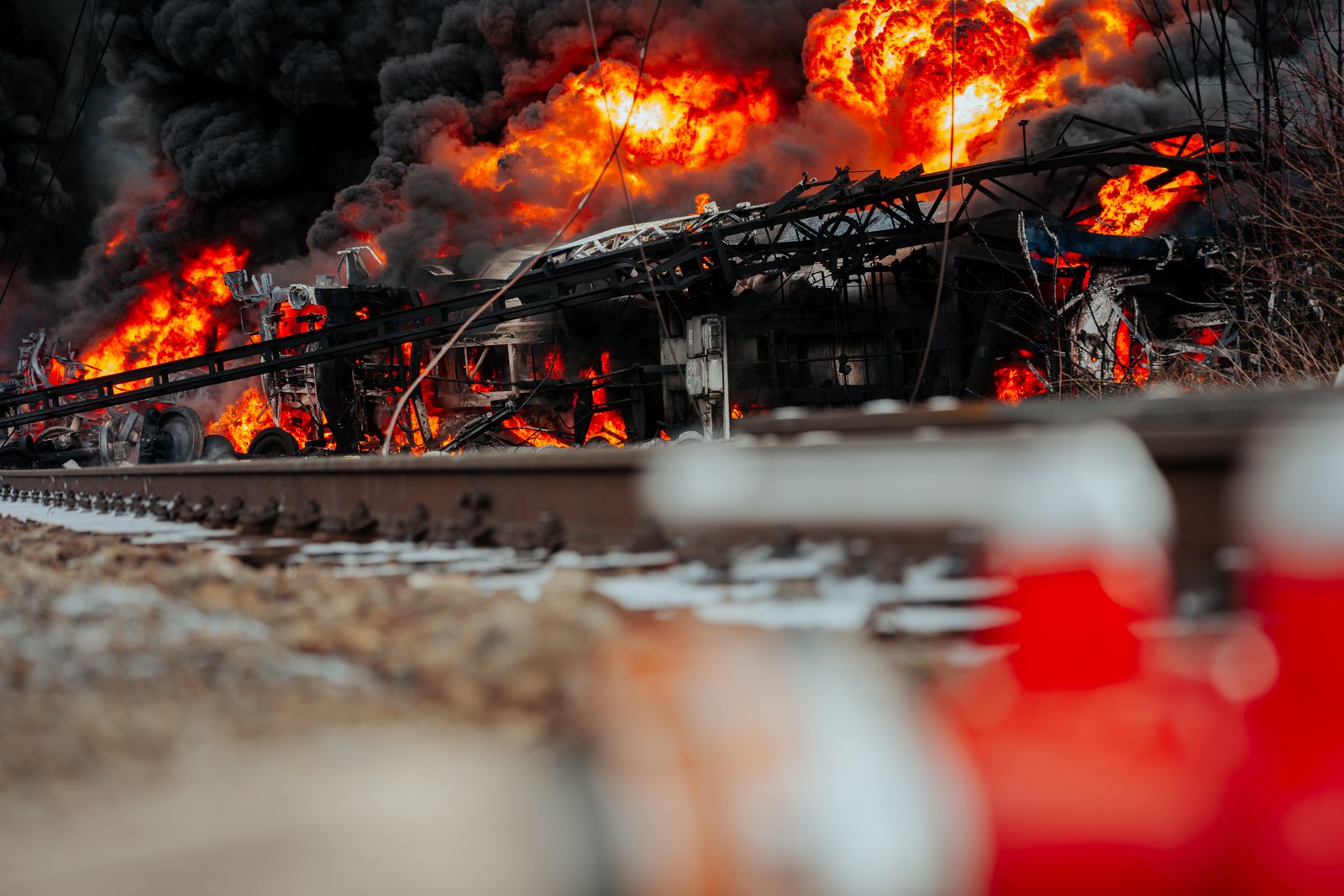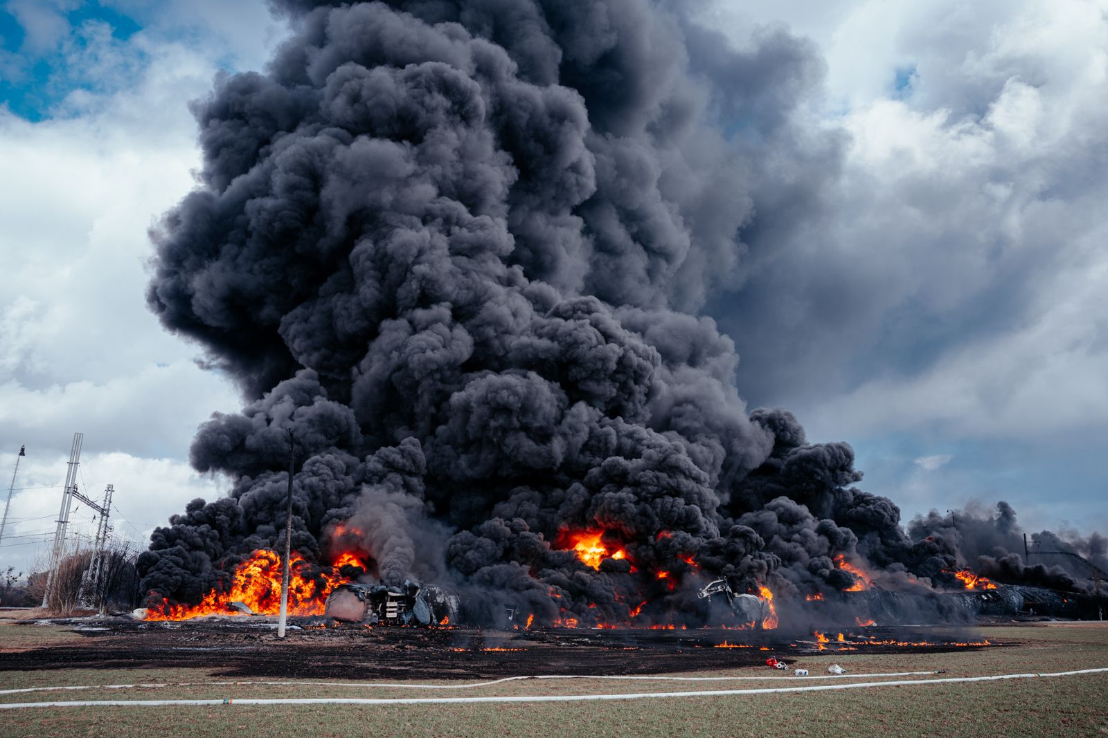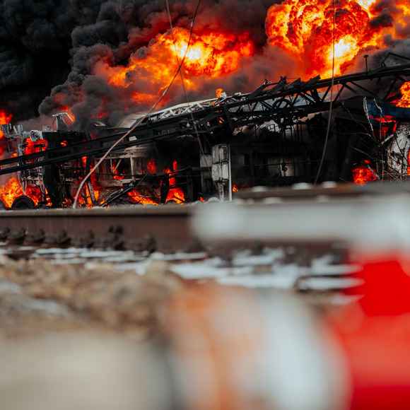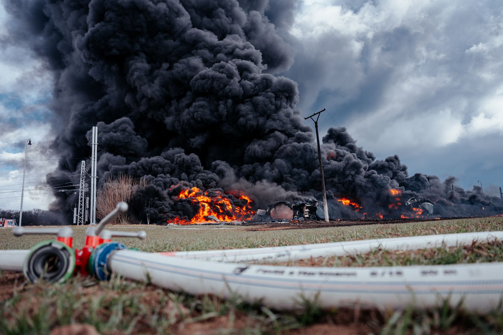 V pátek 28. února 2025 před polednem začaly tísňové linky zaplavovat desítky oznámení od místních obyvatel i řidičů projíždějících kolem. Ohlušující výbuchy, hustá oblaka černého dýmu a plameny šlehající desítky metrů vysoko byly viditelné na velkou vzdálenost. Po železniční dopravní nehodě vlaku, který převážel v 17 cisternách téměř 1 025 tun toxického benzenu, došlo k jeho vznícení a následoval rozsáhlý požár.