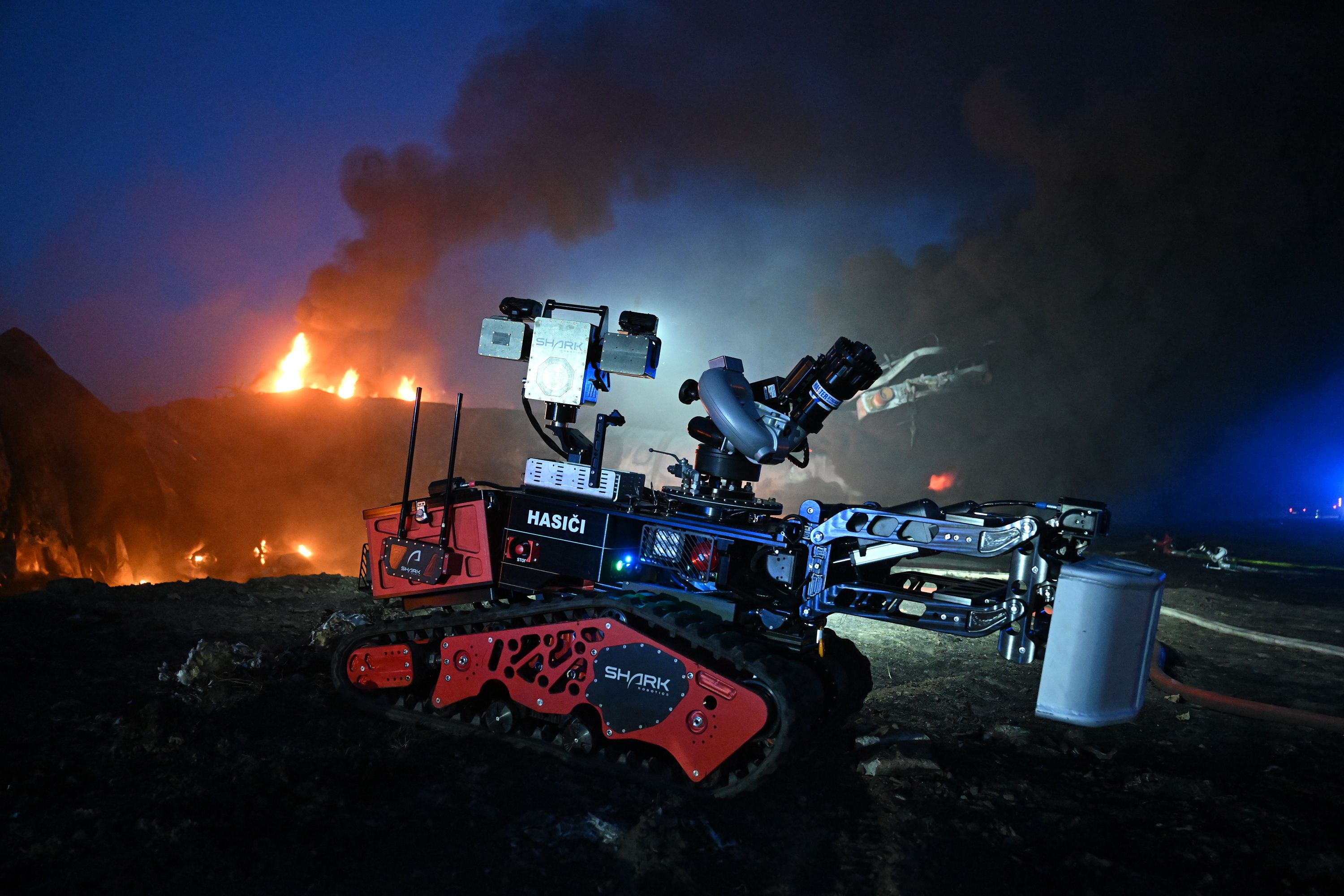 hasicí robot a speciální detektor ze Slovenska pro měření koncentrací nebezpečných látek v ovzduší,