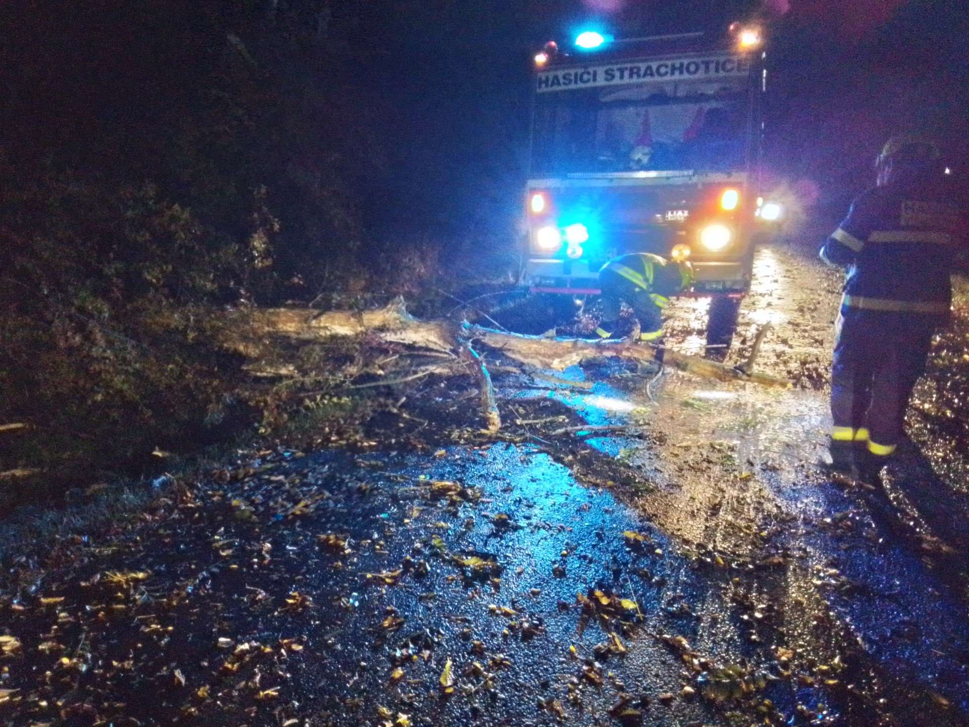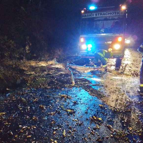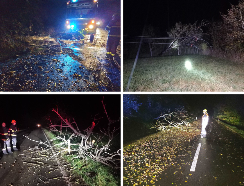 Ve většině případů šlo o popadané stromy a větve bránící provozu. K půl desáté večer už hasiči neevidovali žádné nové události.
