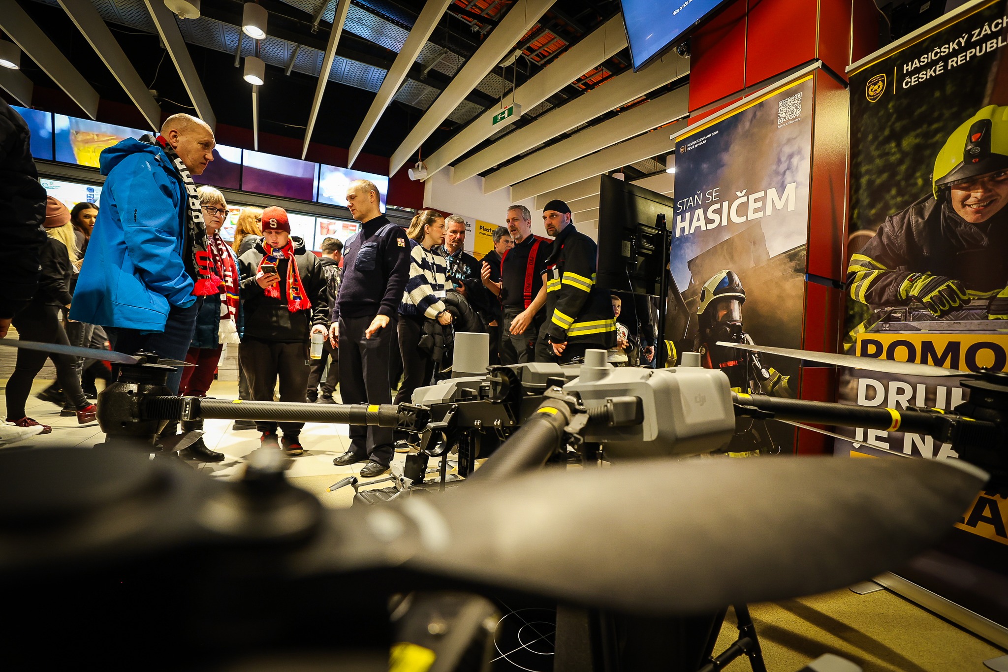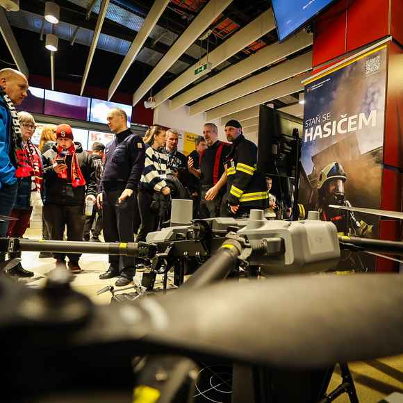 Diváci si v prostorách areny mohli prohlédnout také hasičský stánek. Představena byla novinka v technice, cargo dron, a nechyběla ani možnost vyzkoušet si jeho ovládání v počítačové simulaci. Venku pak probíhaly ukázky hasičské techniky, které přitahovaly malé i velké návštěvníky.