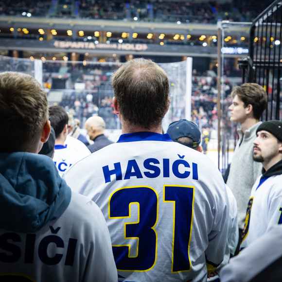 Sparta vzdává hold: hokej, respekt a vítězství hasičů v zaplněné O2 areně
