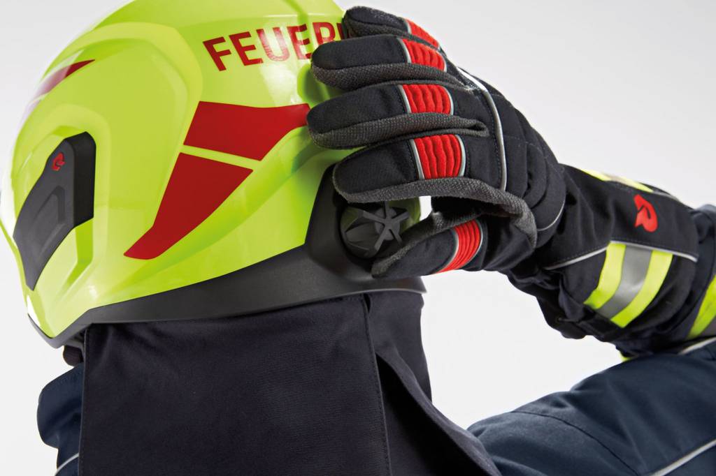 Skořepina z vysoce odolného materiálu zůstává tvarově stabilní v teplotním rozsahu přibližně od –40 °C do více než 300 °C. Přesto si přilba zachovává relativně nízkou hmotnost – přibližně 1 350 gramů ve standardní konfiguraci – a díky vyváženému rozložení hmotnosti nabízí vysoký komfort i při delších zásazích.