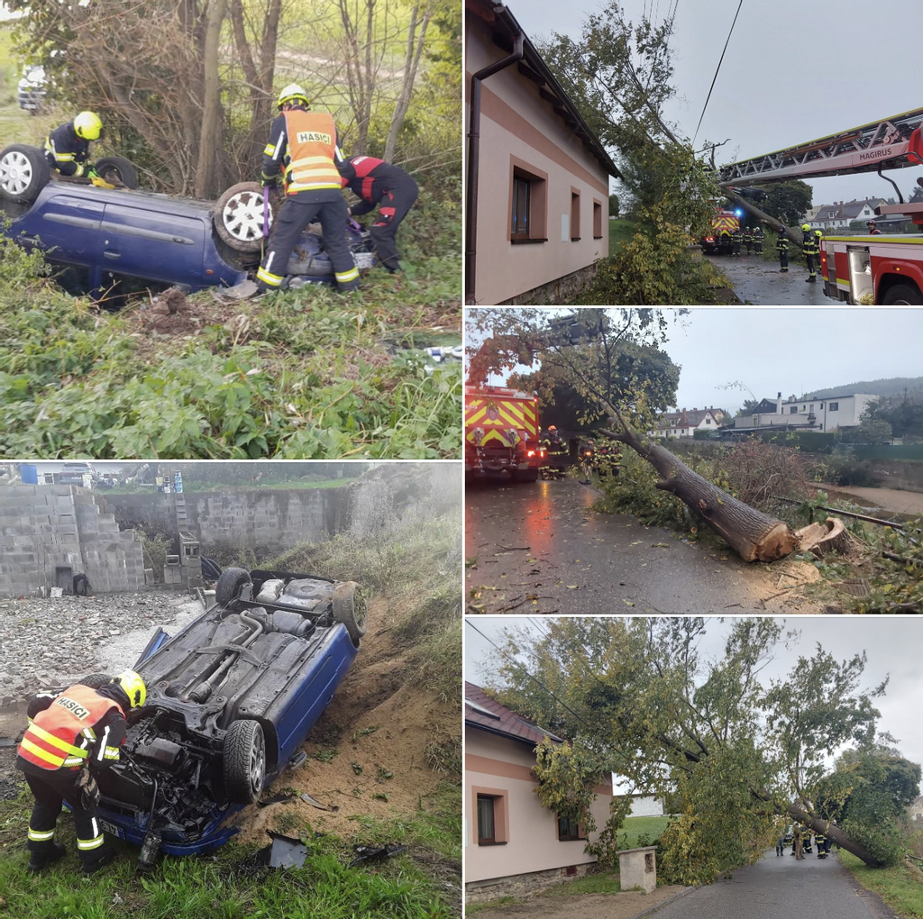 Od pátku do neděle museli hasiči vyjet k více než sedmdesáti událostem, z toho k deseti dopravním nehodám. Dvě auta skončila mimo silnici – na střeše. Štěstím je, že se nikdo vážně nezranil.