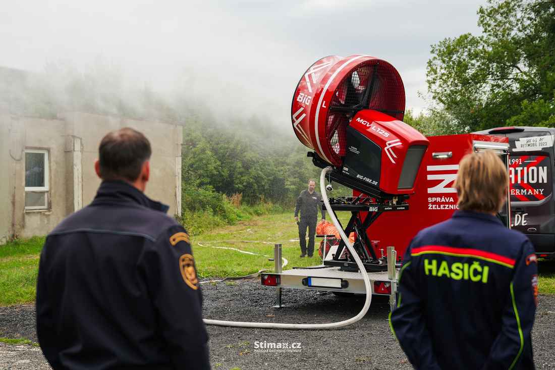 Nenapadlo nás, že už pár dní poté budeme mít možnost si tyto roboty osobně vyzkoušet – a to rovnou při předváděcí akci v České republice. Firma Požární bezpečnost, která je výhradním distributorem techniky Rosenbauer v ČR, připravila předváděčku v areálu Správy železnic. Prostor zde sice byl omezený, ale na ukázku hašení, přejezd kolejí, jízdu po kolejišti nebo demonstrování variability ovládání to rozhodně stačilo.