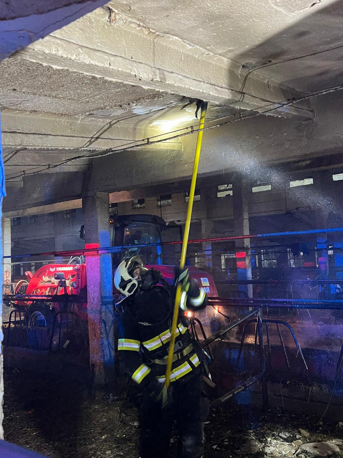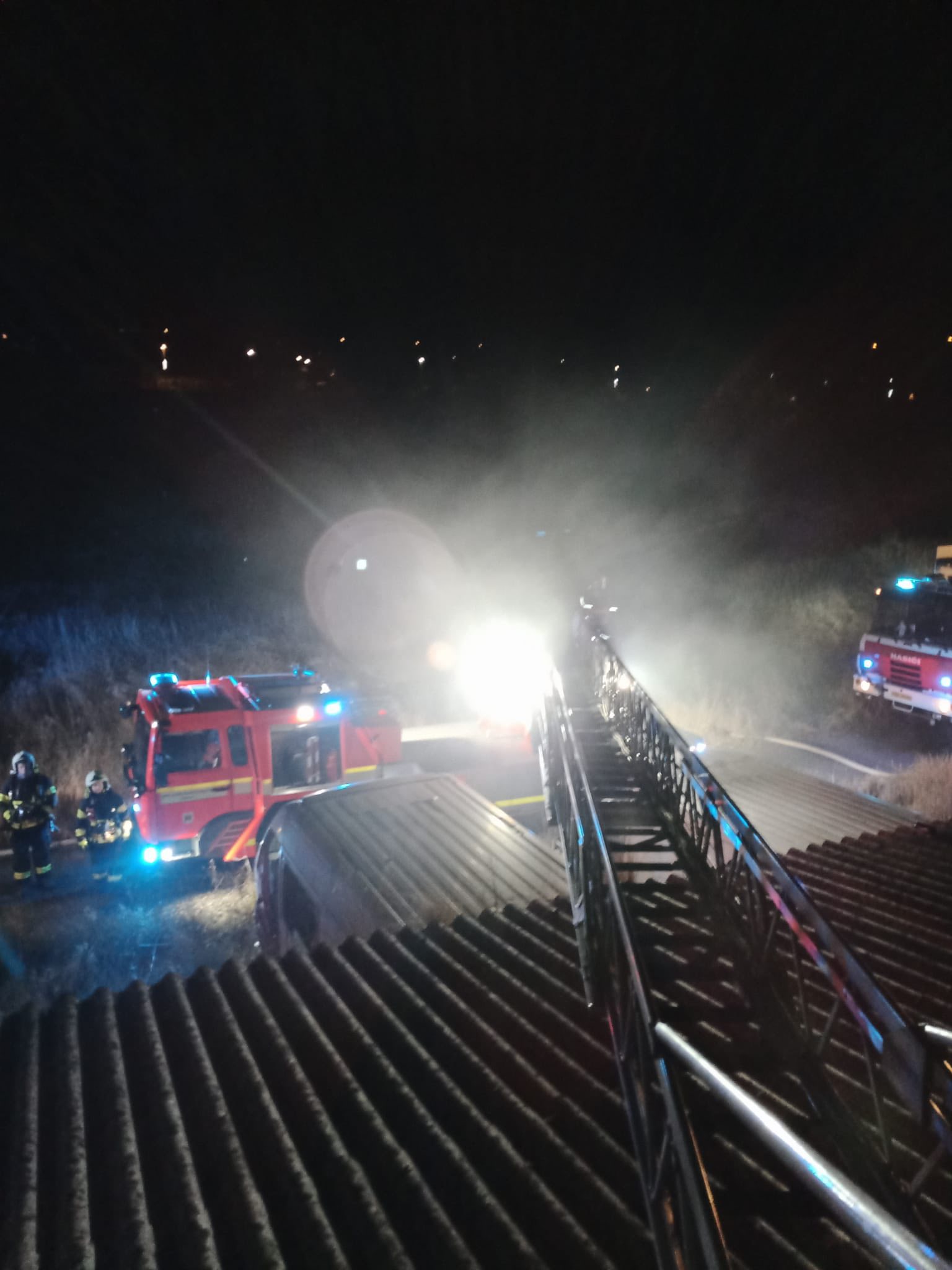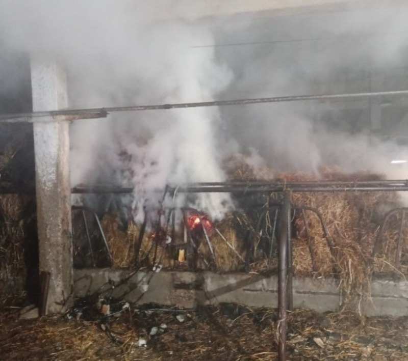 Po příjezdu na místo zásahu bylo průzkumem zjištěno, že v hale hoří uskladněné balíky sena a požár se rozšířil také na střešní konstrukci objektu.