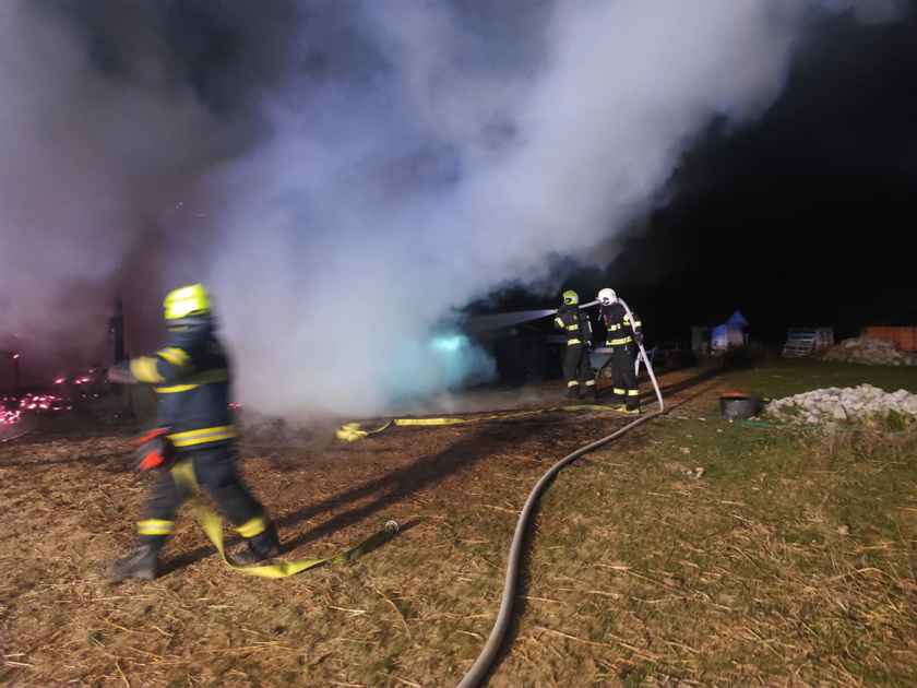 Hasiči zasahovali u nočního požáru v areálu stájí.