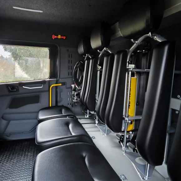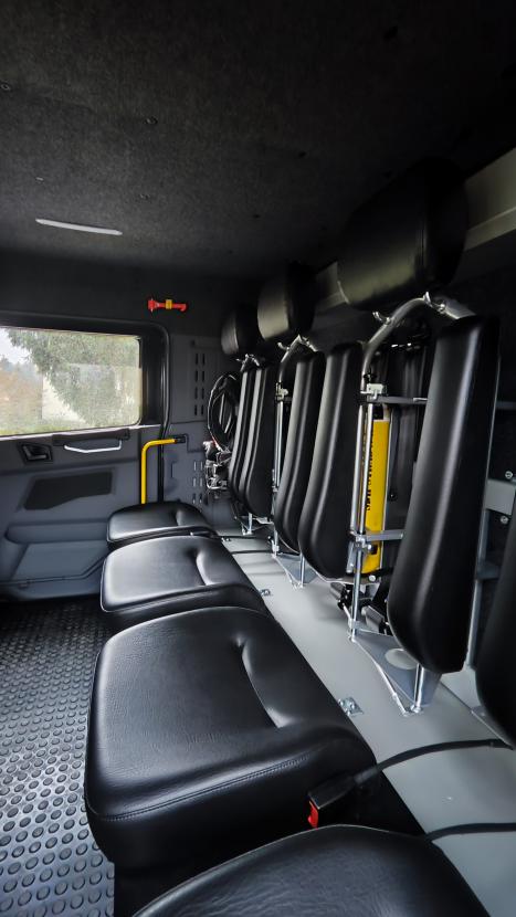 - Osádka: 1+5 hasičů, kabina s úchyty pro 6 dýchacích přístrojů