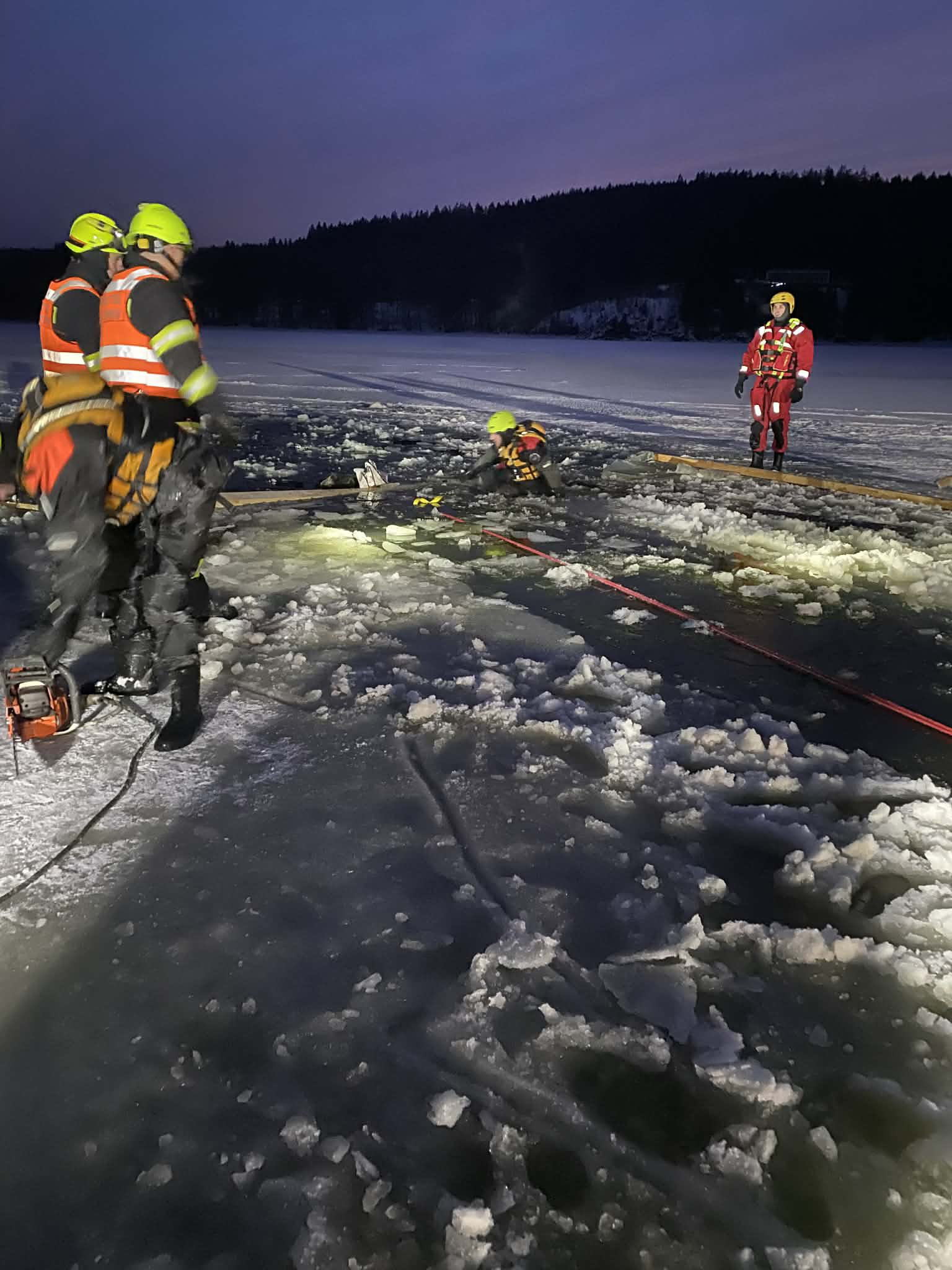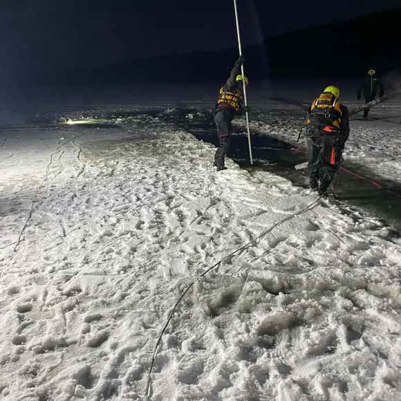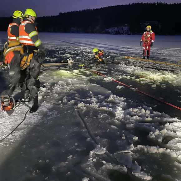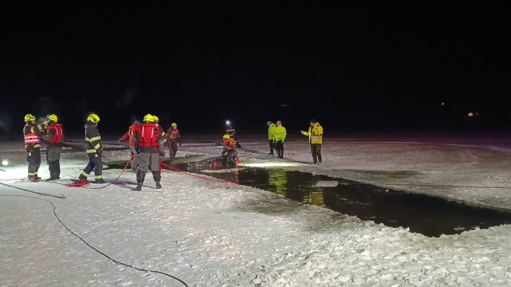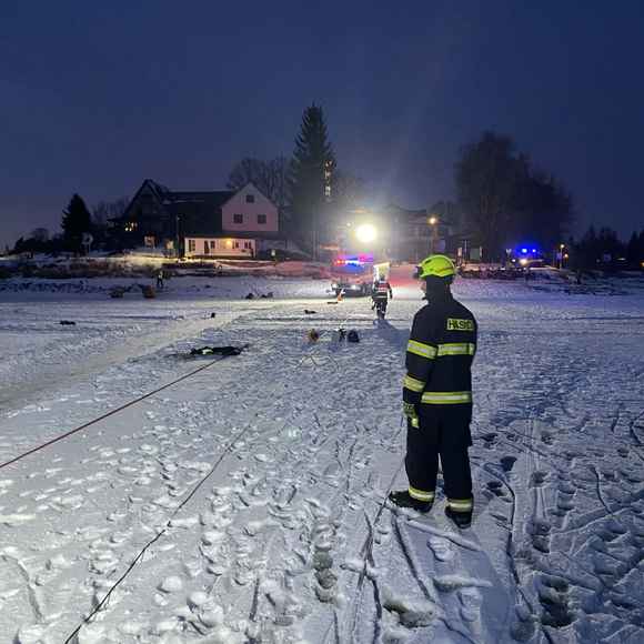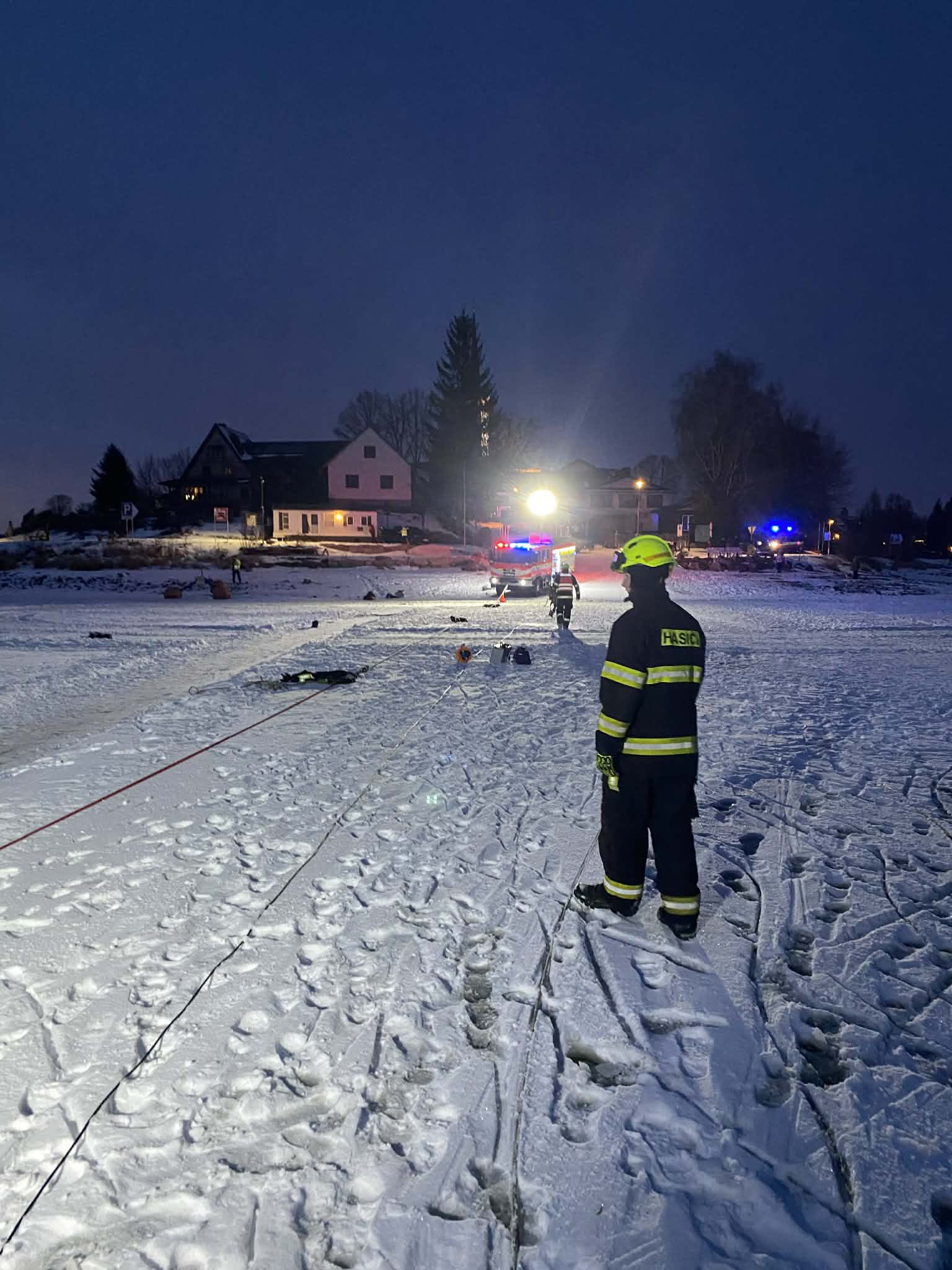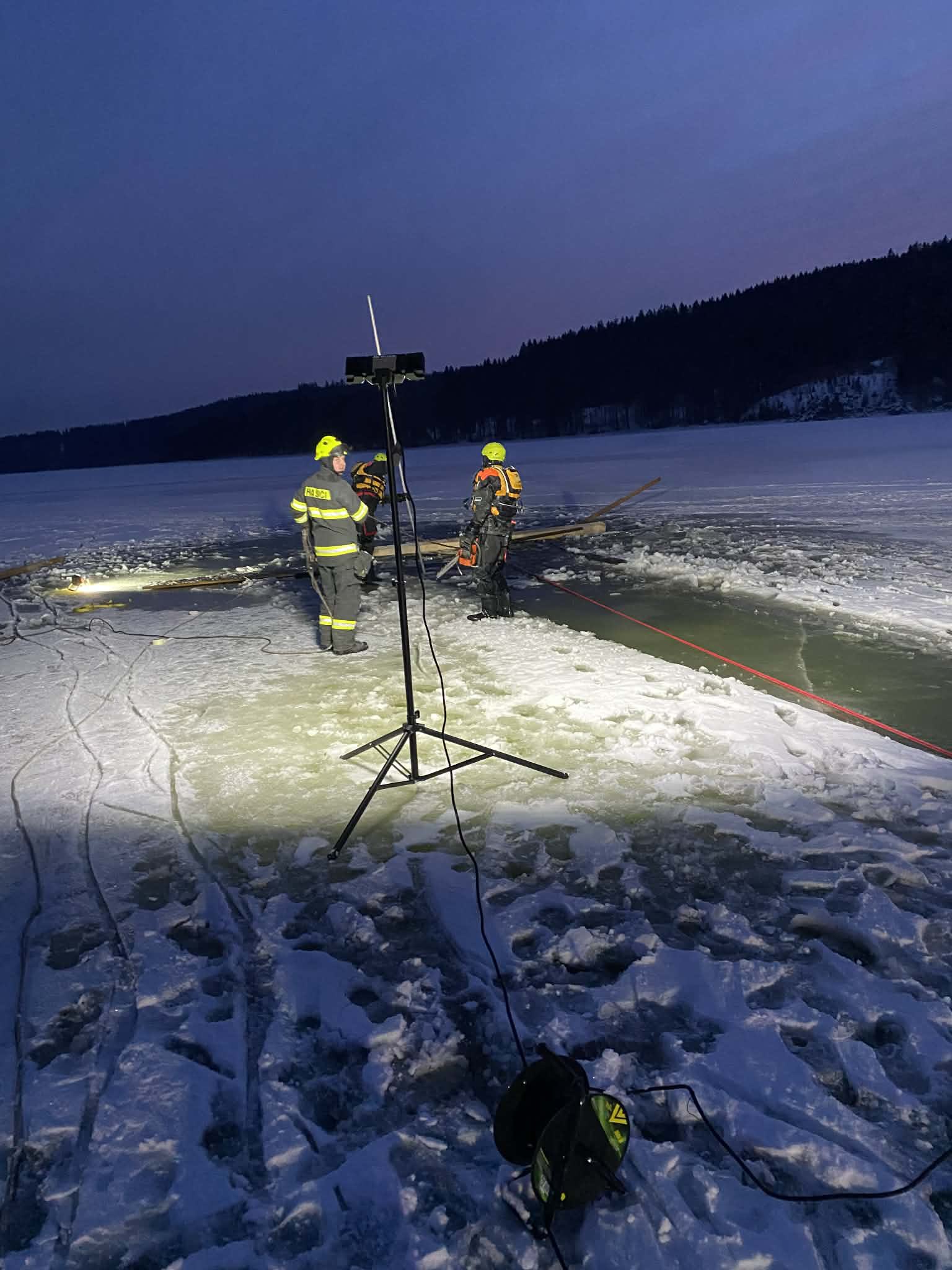 Podle informací hasičů se "osmikolka" nacházela zhruba ve čtyřmetrové hloubce. Jednotky nejprve prořezávaly led směrem ke břehu a následně stroj vytahovaly pomocí navijáku. Zásah probíhal v náročných podmínkách na nestabilní ledové ploše.