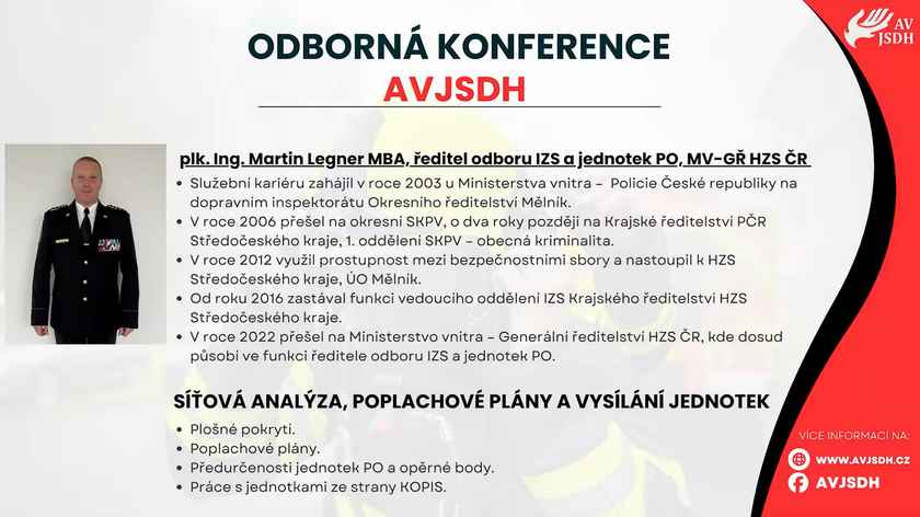 AVJSDH zveřejnila videozáznam z 2. ročníku své odborné konference. Téma „Síťová analýza, poplachové plány a vysílání jednotek“ přednesl plk. Ing. Martin Legner MBA, ředitel odboru IZS a jednotek PO MV – GŘ HZS ČR.