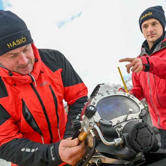 Zimní obrazy doprovázely odborný výcvik hasičských potápěčů v lomu Šifr u Svobodných Heřmanic na Bruntálsku. Trénink byl zaměřen na prověření funkčnosti speciálního potápěčského systému Kirby Morgan ve velkých hloubkách, v ledové vodě a při nízkých teplotách. Systém tvoří robustní přilba určená pro práci v nebezpečných a kontaminovaných kapalinách v rámci prostředí HAZMAT, hadice pro přívod vzduchu, zásobníky a ovládací zařízení KMACS 5, které zajišťuje regulaci vzduchu i komunikaci s potápěčem.