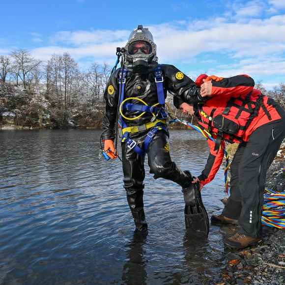 Třetí ve skupině je návodčí na břehu, který potápěče spouští do hlubin. Součástí týmu je operátor, jenž díky ovládacímu kufru po celou dobu sleduje aktuální hloubku a další parametry ponoru. Také může s hasičem komunikovat, navádět jej a řešit s ním drobné problémy. Nedílnou součástí skupiny je supervizor, který celé akci velí," popsala podrobně výcvik tisková mluvčí HZS Olomouckého kraje por. Mgr. Lucie Balážová.